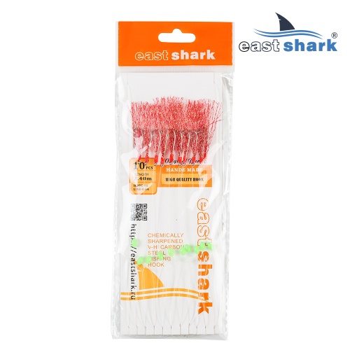 Готовая оснастка на 10 крючков для ловли хищной рыбы, отлично подходит для ловли селедки и морской рыбалки. Крючок оснащен люрексом. Длина оснастки 2,4 м. Размер крючка №8 Леска диаметр 0,44 мм.