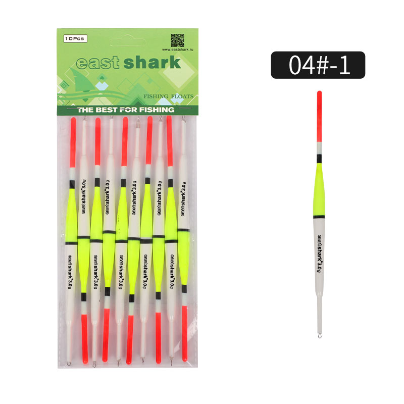 Линейка пластиковых поплавков от компании EastShark. Яркий дизайн обеспечивает хорошую заметность. Вес заявлен точно. Поплавки скользящие, имеют петлю металл. Цена указана на 1 упаковку. В упаковке 10 поплавков одного цвета!