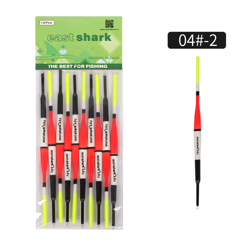 Линейка пластиковых поплавков от компании EastShark. Яркий дизайн обеспечивает хорошую заметность. Вес заявлен точно. Поплавки скользящие, имеют петлю металл. Цена указана на 1 упаковку. В упаковке 10 поплавков одного цвета!