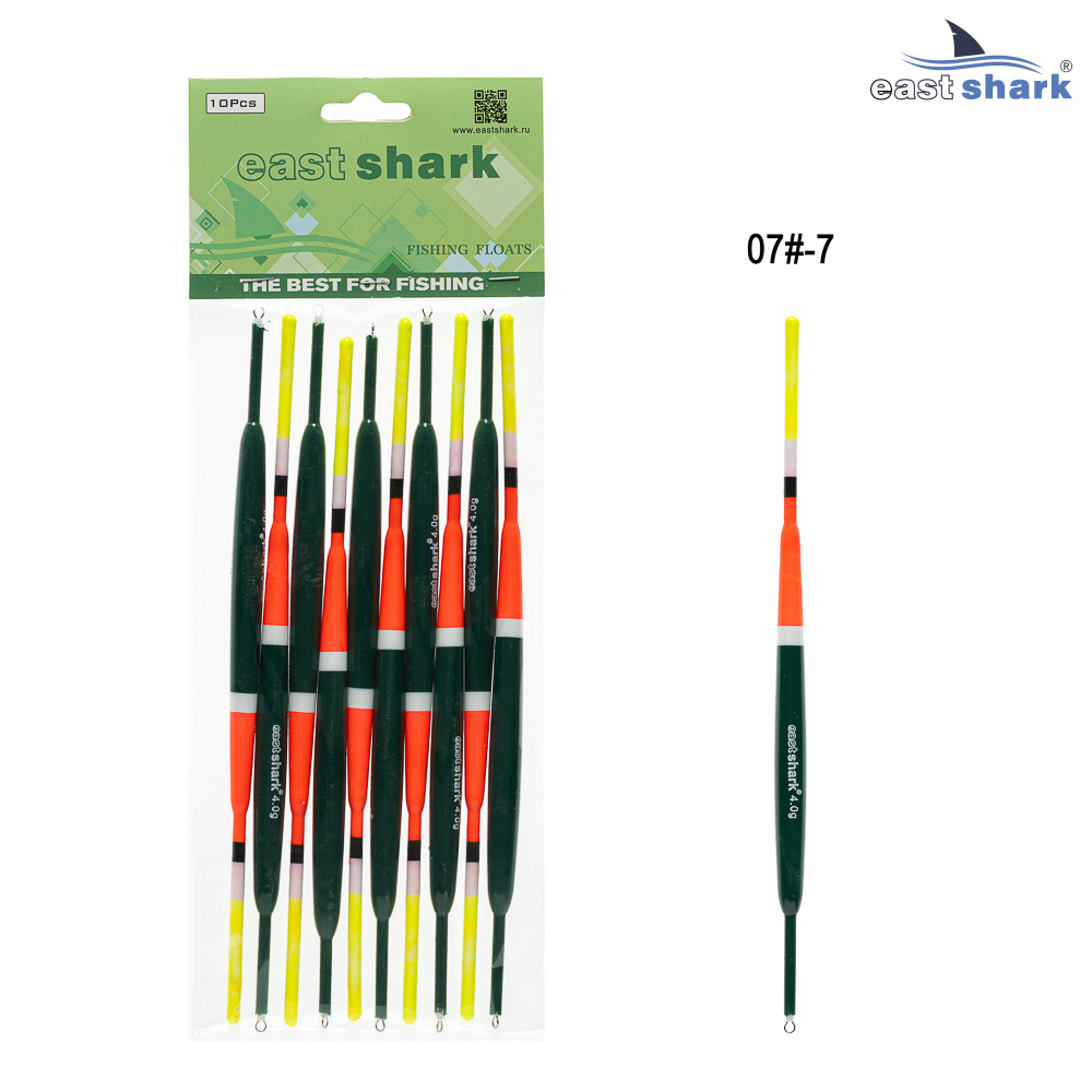 Линейка пластиковых поплавков от компании EastShark. Яркий дизайн обеспечивает хорошую заметность. Вес заявлен точно. Поплавки скользящие, имеют петлю металл. Цена указана на 1 упаковку. В упаковке 10 поплавков одного цвета!