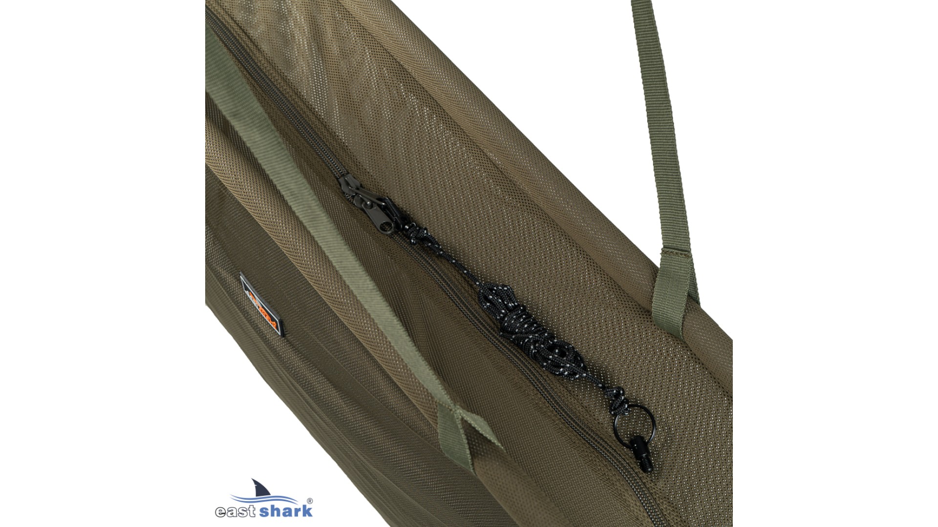 Выполнена из плотной сетки, по краям имеет надежную молнию, позволяющую застегнуть сумку полностью по кругу и разместить в ней рыбу в воде.