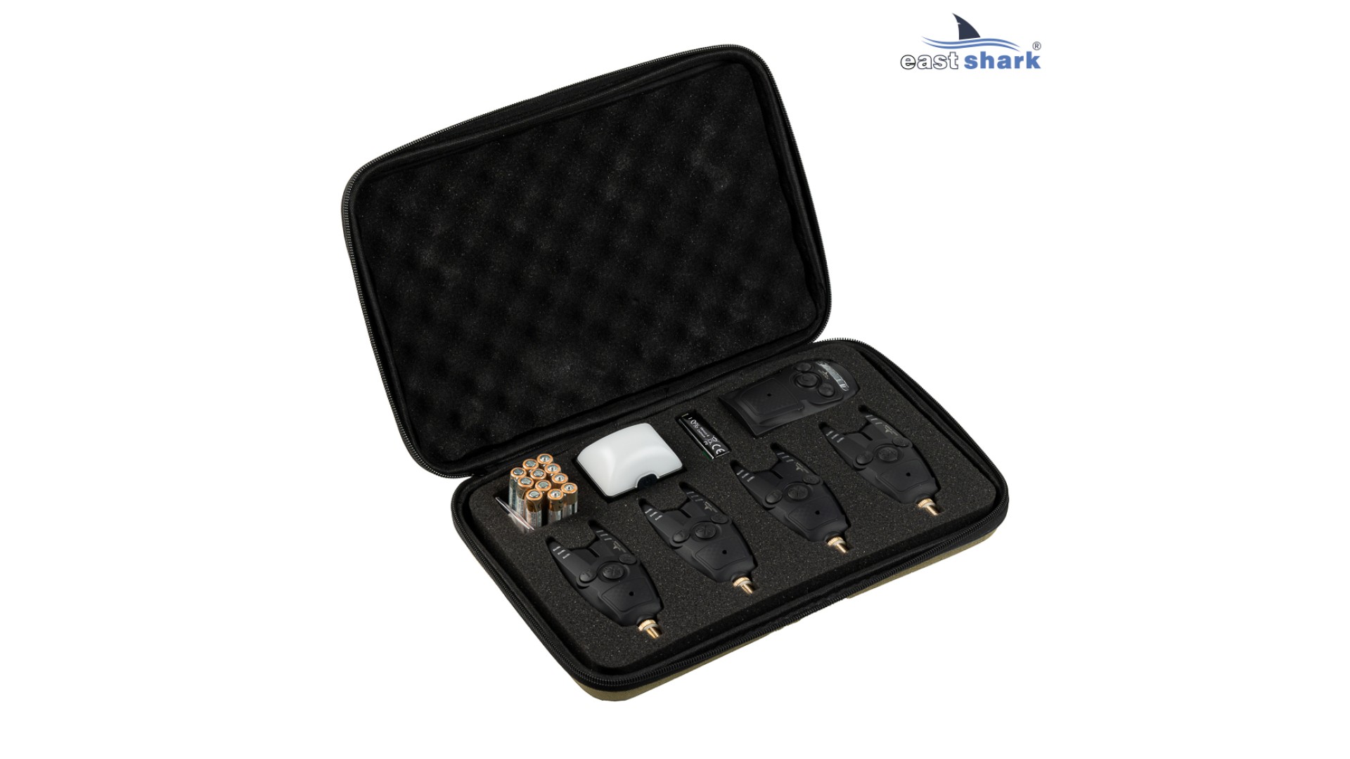 Набор сигнал. с пейджером EastShark SP-13 (4+1) + фонарь включает в себя удобный кейс, обеспечивающий безопасность и целостность содержимого, 4 электронных сигнализатора поклевки (4 цвета желтый/зеленый/синий/красный), пейджер, автоматический фонарь в палатку, 1 из режимов работы которого синхронизируется с пейджером (загорается при поклевке), элементы питания, инструкция на английском языке и запасные колечки O-ring для сигнализаторов. Покрытие сигнализаторов и пейджера Soft touch — это эластичное резиноподобное матовое лакокрасочное покрытие, обладает хорошей адгезией с металлами, деревом, тканями и большинством полимерных материалов, повышенной износостойкостью, гигиенично и выдерживает длительные истирающие нагрузки.