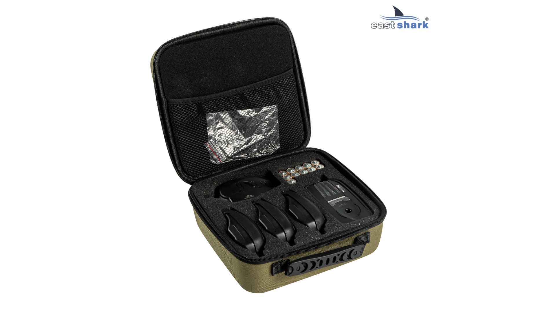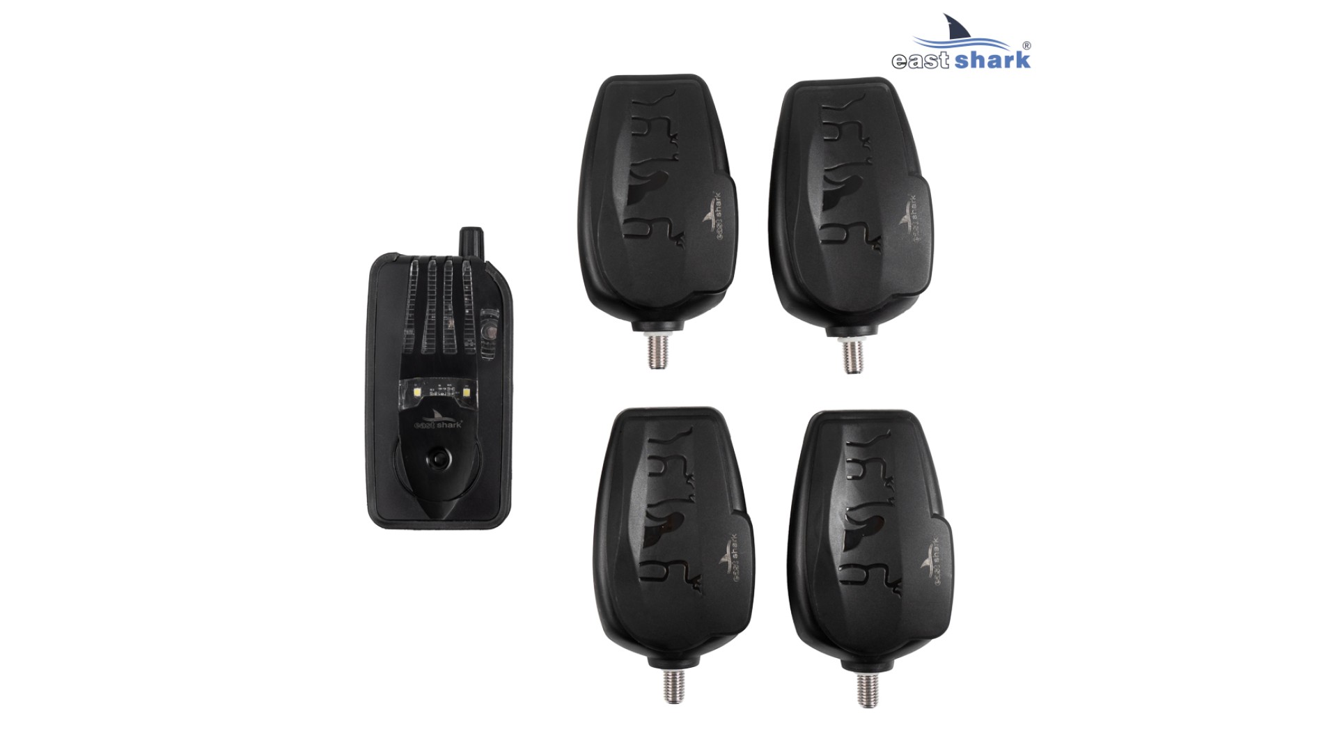 Набор сигнализаторов к кейсе с пейджером EastShark Special Carp Alarm NEW (обновленная версия) включает в себя 4 электронных сигнализатора поклевки + пейджер + 4 защитных крышки на сигнализаторы + отвертка!