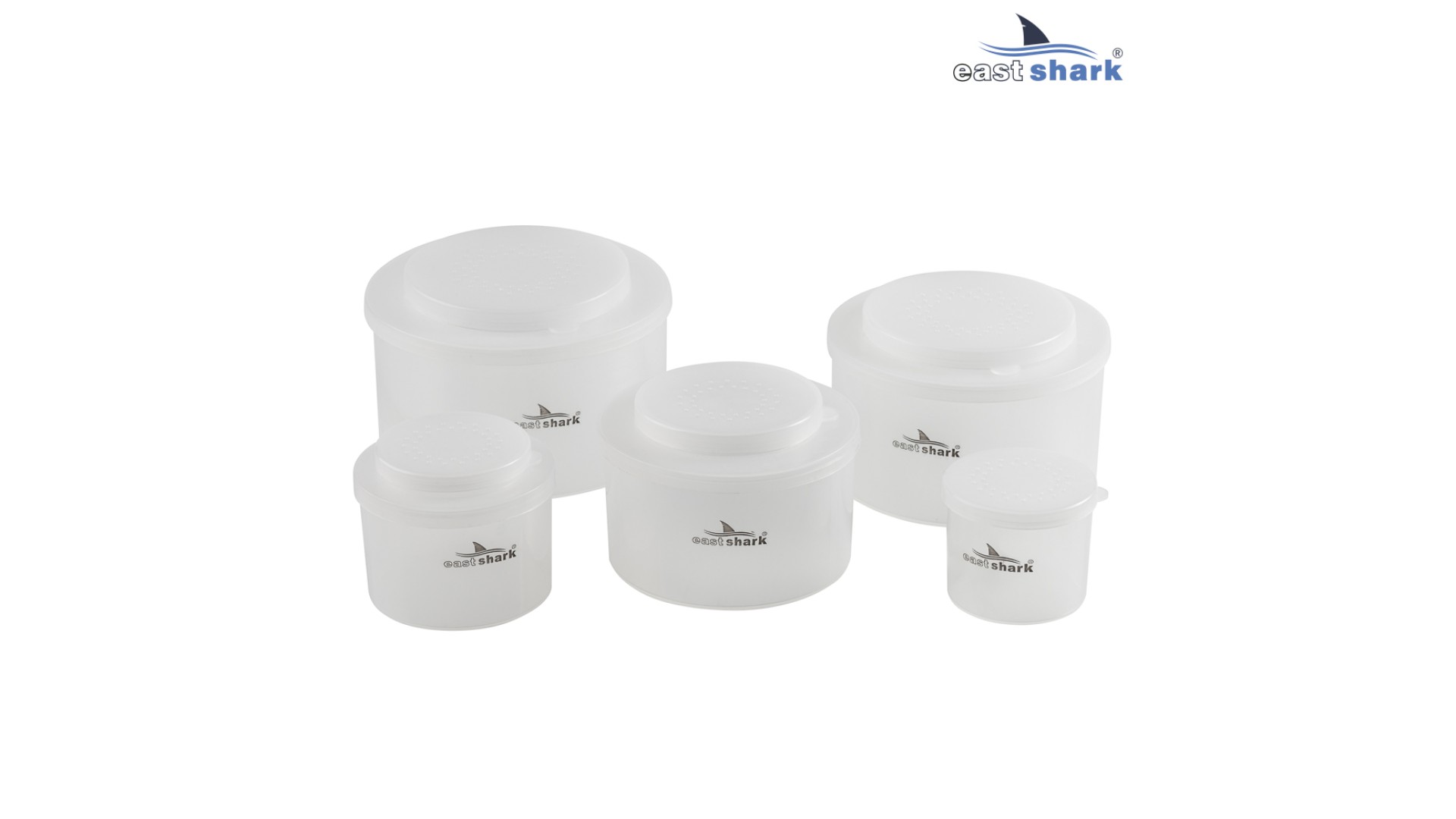 Емкости для наживки EastShark, набор 5 шт, крышки в бортиком и отверстиями для вентиляции.