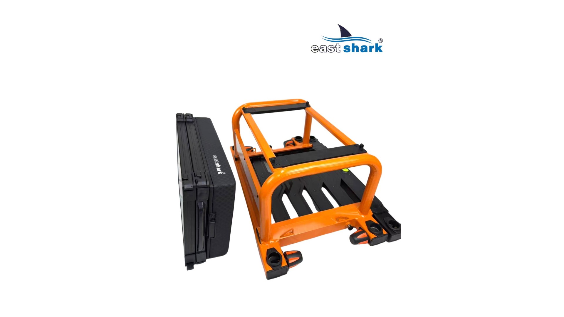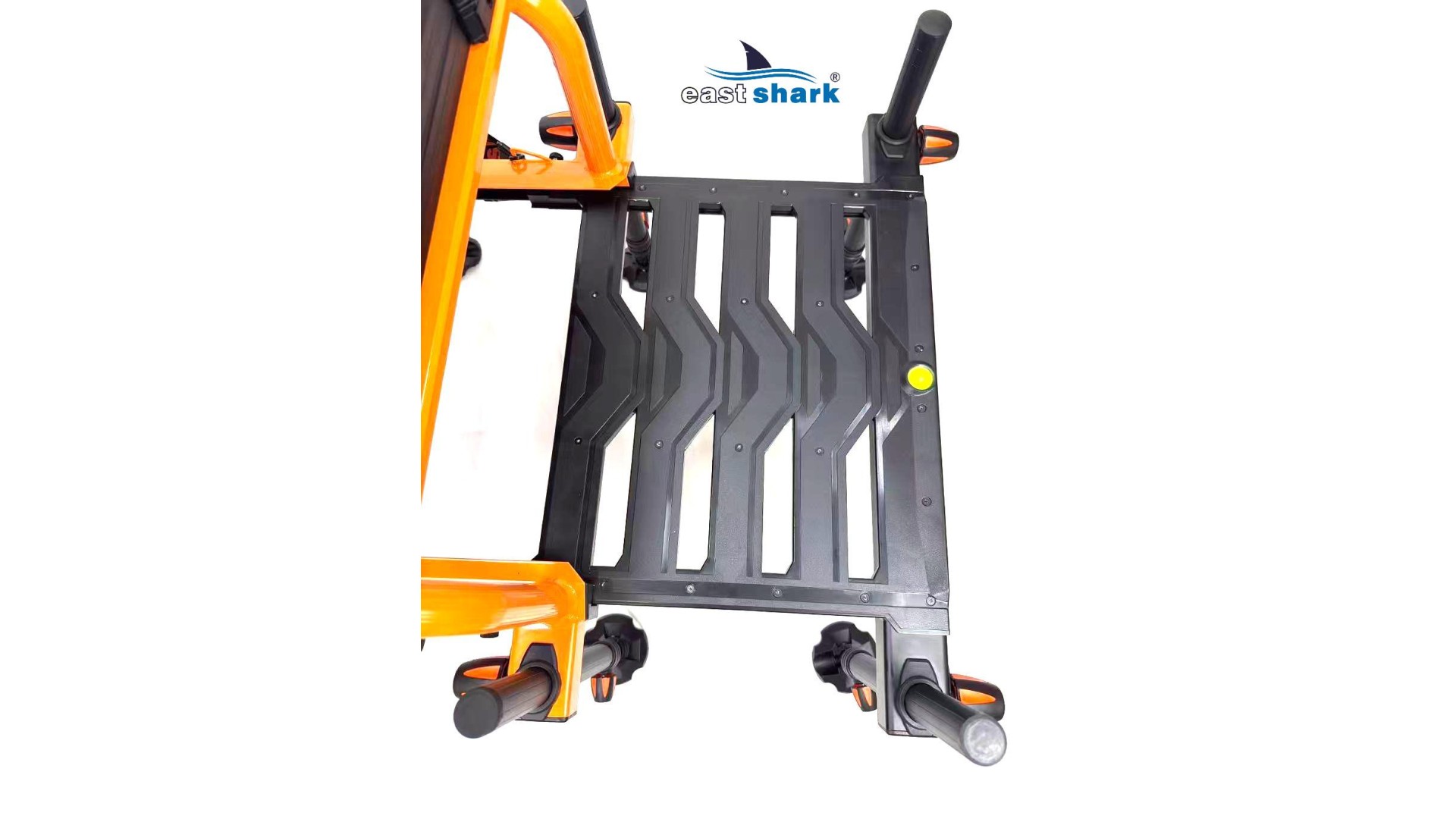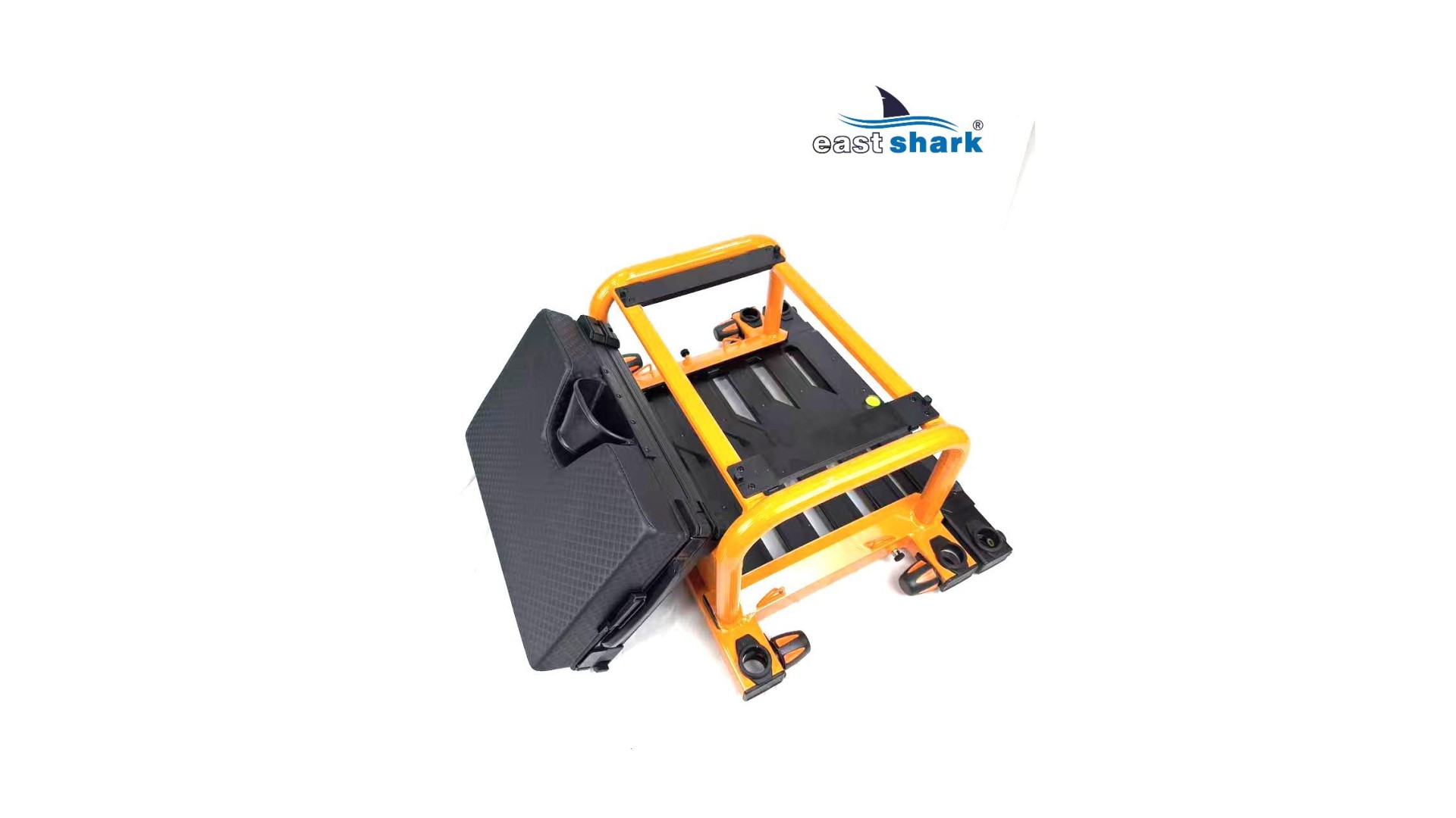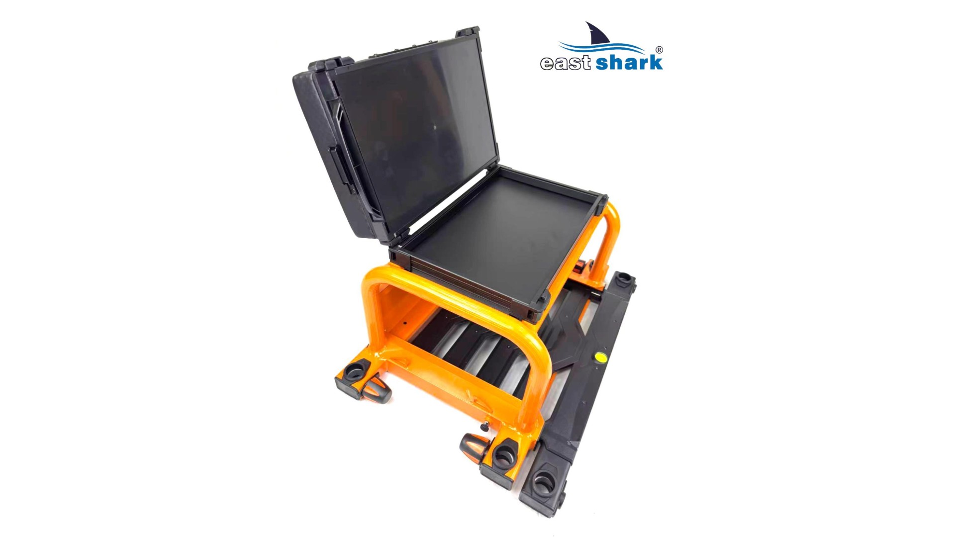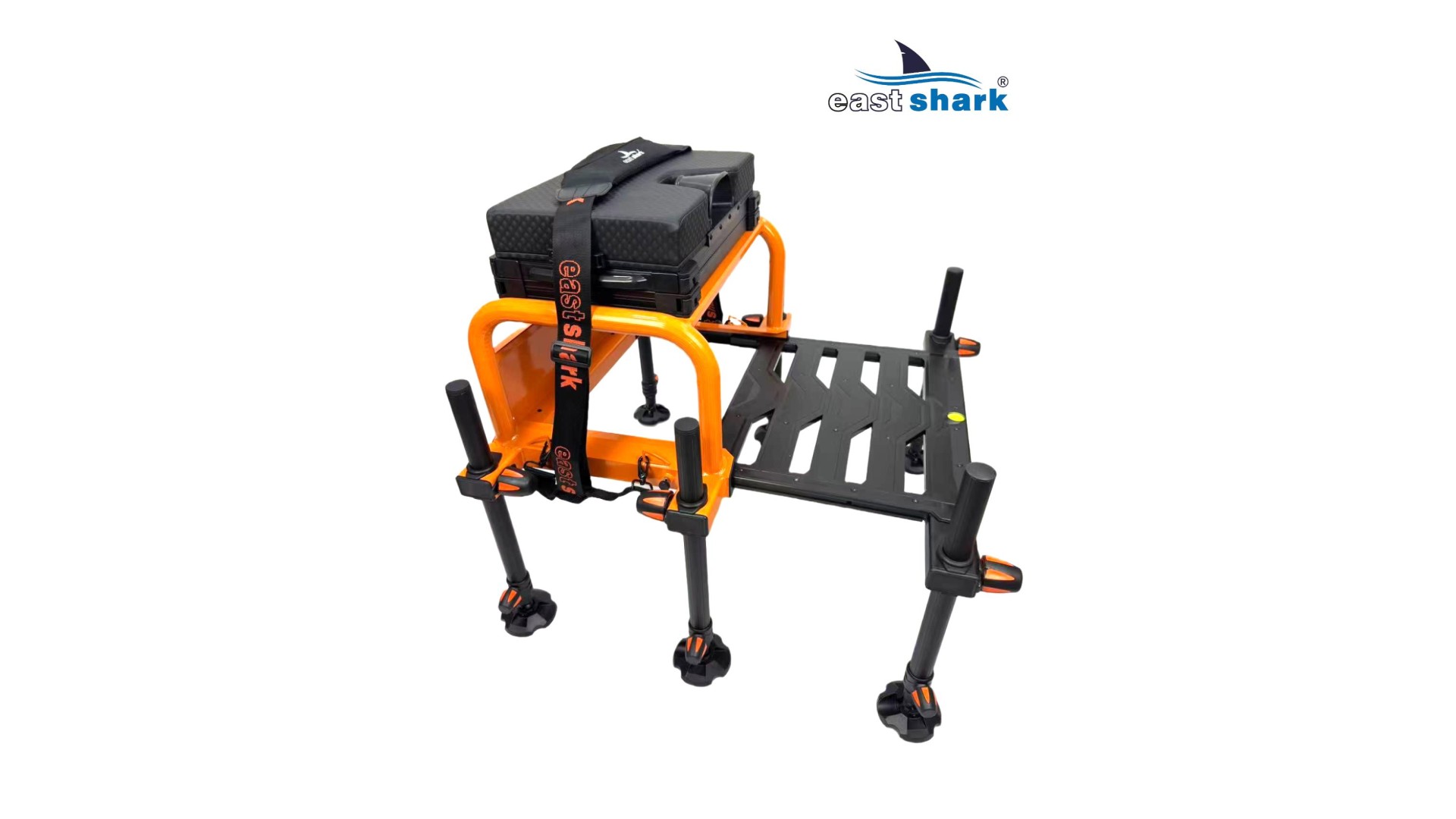 Высококачественная современная, футуристическая, профессиональная платформа с верхней полки известной и уважаемой компании Eastshark Изготовлен из легкого и сверхпрочного дюралюминия, покрытого неабразивной краской черного и оранжевого цвета. Конструкция площадки основана на закрытых дюралюминиевых профилях