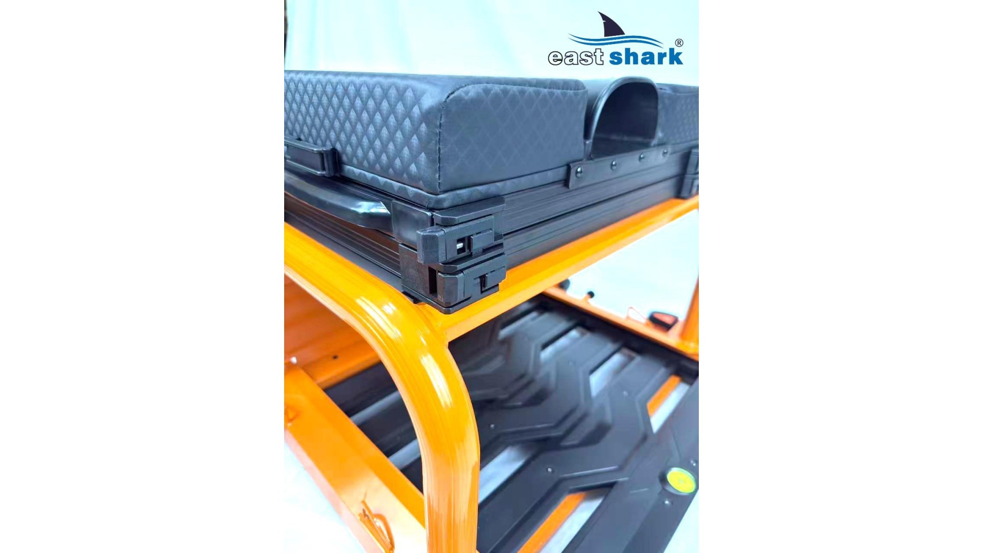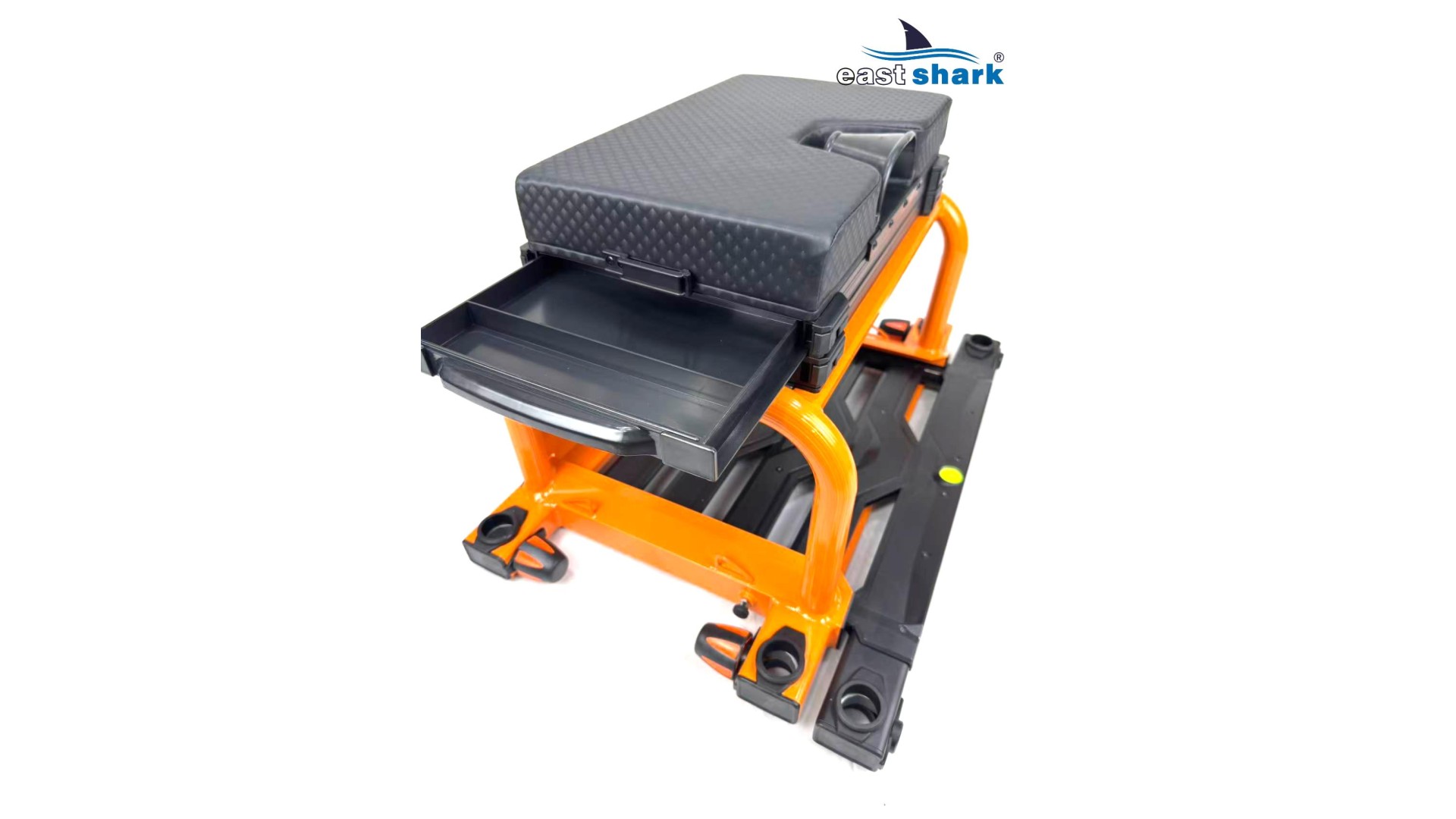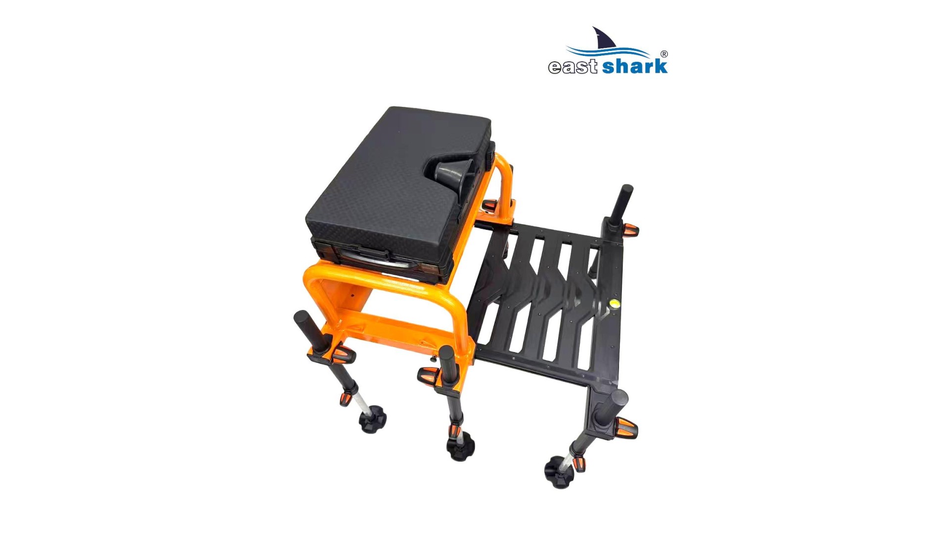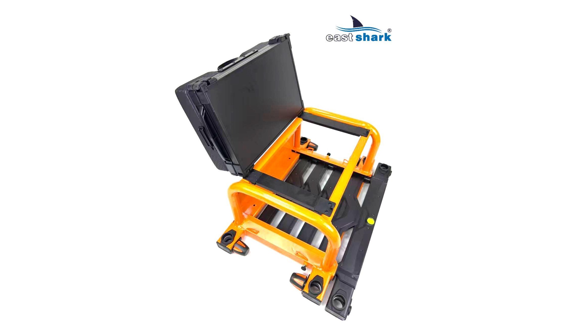 Высококачественная современная, футуристическая, профессиональная платформа с верхней полки известной и уважаемой компании Eastshark Изготовлен из легкого и сверхпрочного дюралюминия, покрытого неабразивной краской черного и оранжевого цвета. Конструкция площадки основана на закрытых дюралюминиевых профилях