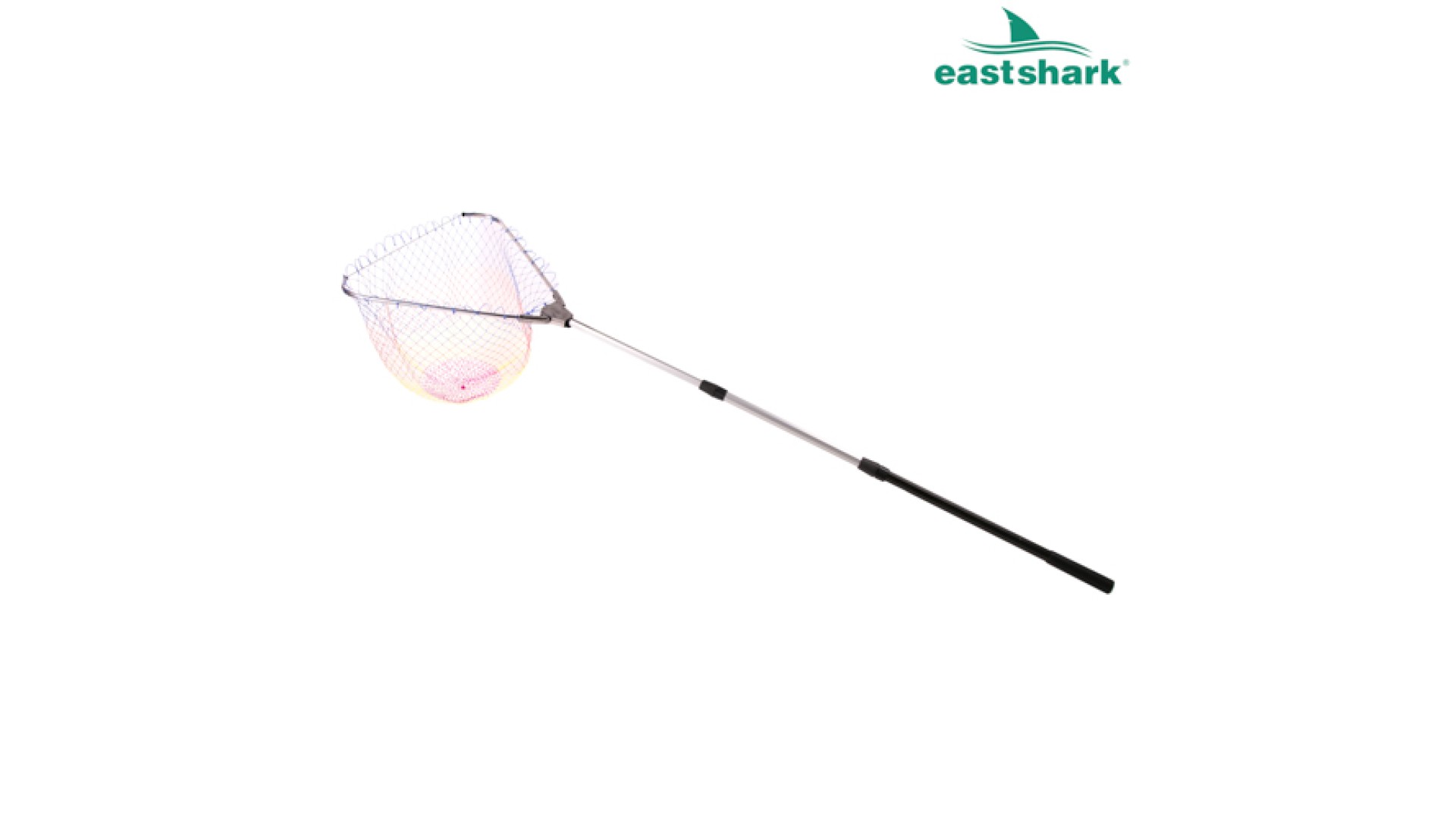 Подсак складной треугольный. Лесочный цветной. Надежный металлический механизм складной головы. Телескопическая ручка.
