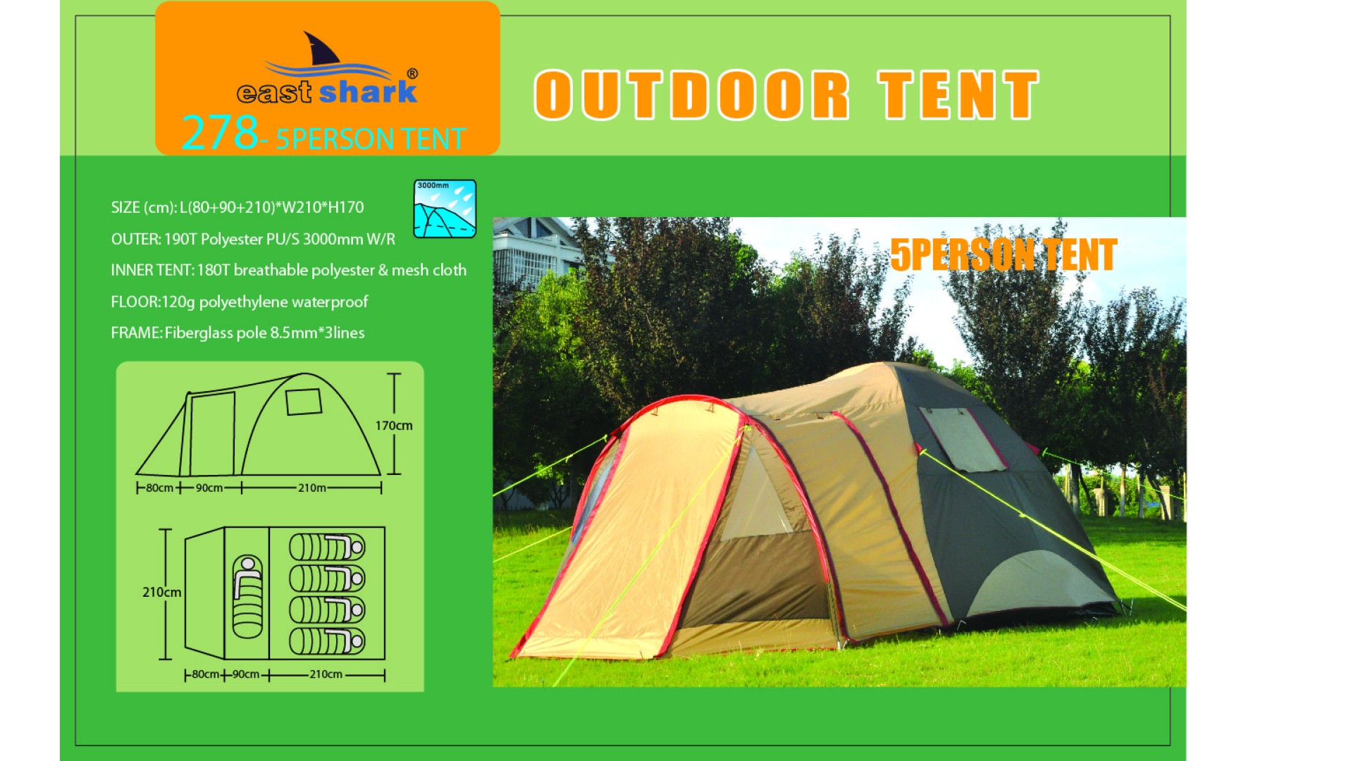 Ткань тента: 190T POLYESTER (полиэстер) PU3000MM B/H