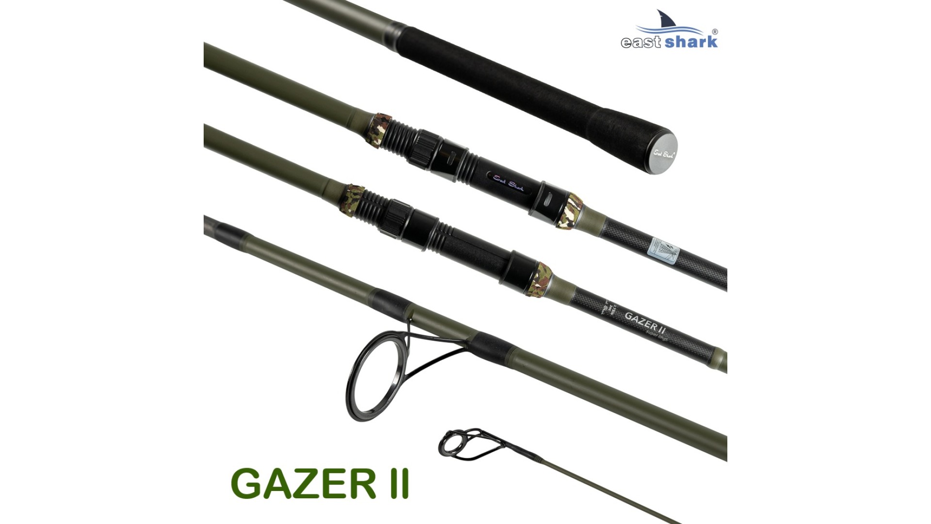Серия карповых удилищ Gazer 2 от EastShark включает в себя рабочие бланки с тестом 3,75LB в длине 3.6 и 3.9 м, мощные бланки с маркировкой SPOD, с тестом 5,0 LB для прикармливания или ловли на течении с большими весами грузов длиной 3.6 и 3.9 м. А так же, Gazer 2 представлен в двух и трёх частном исполнении.